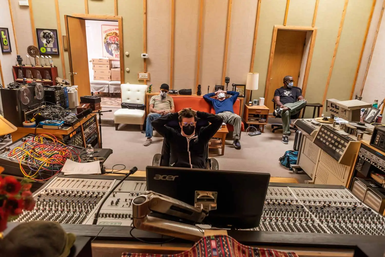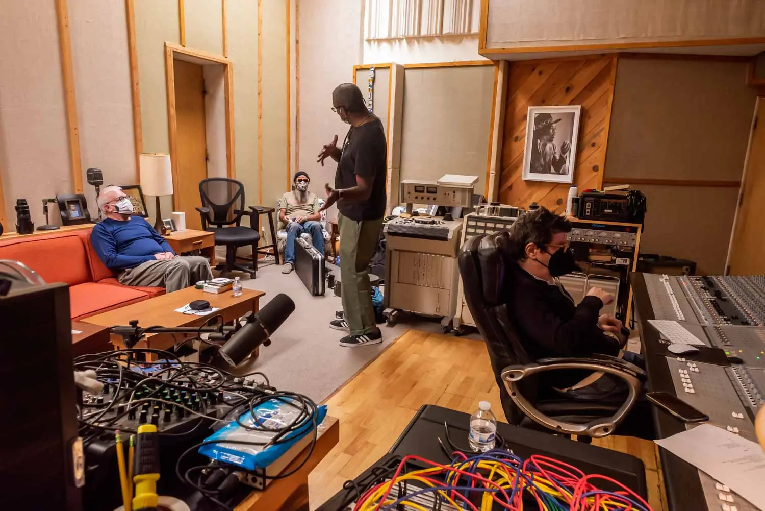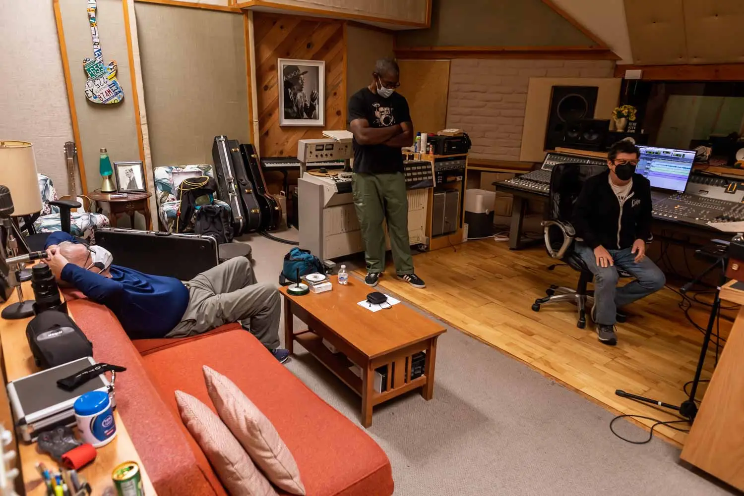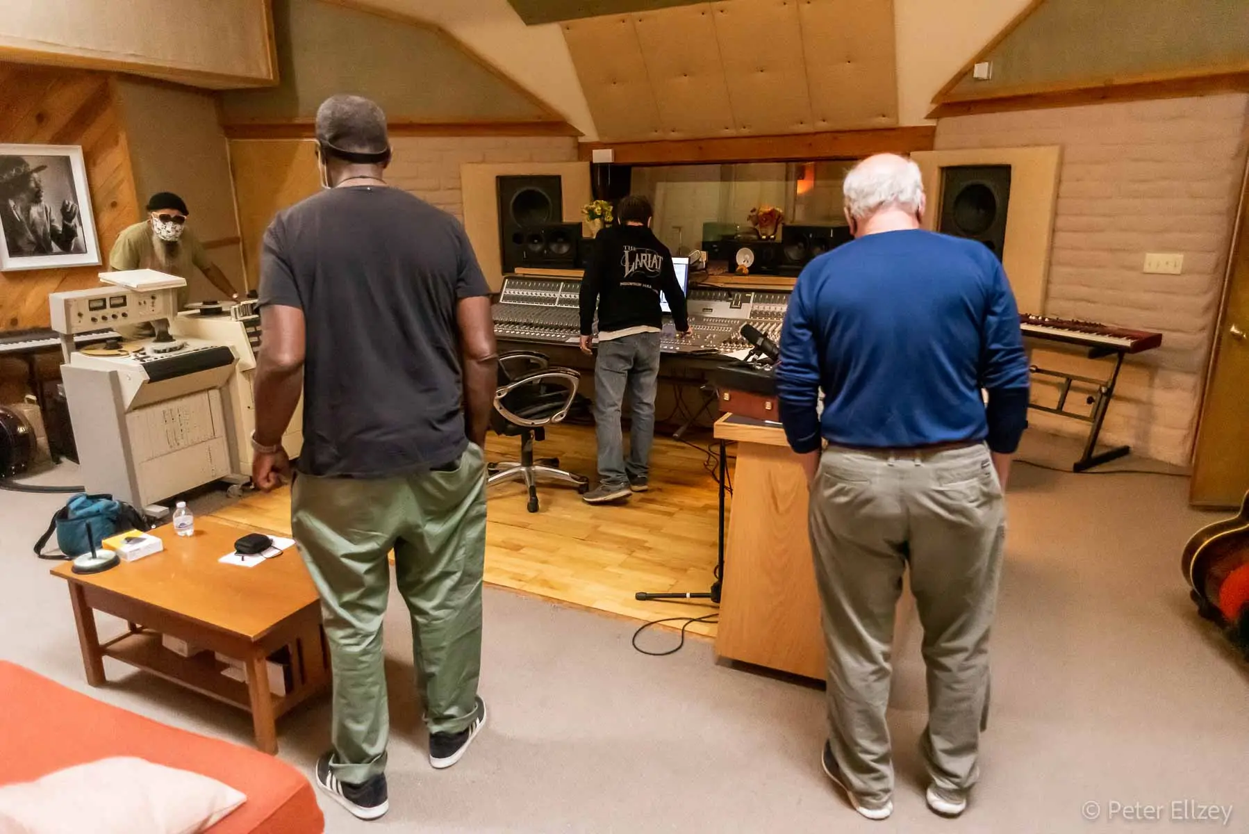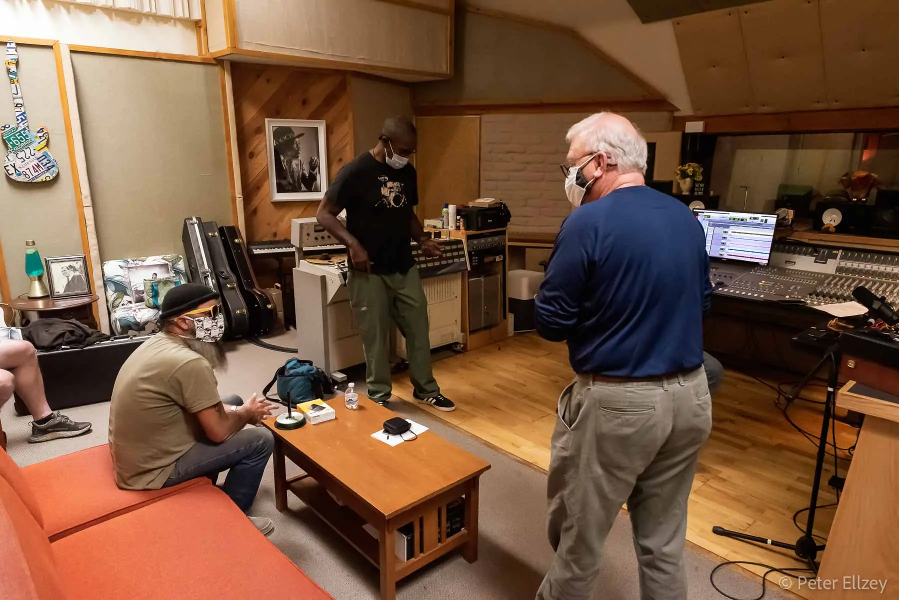 Angel of the Airwaves was the first song to be cut for Support Sessions. It’s a tribute to Sean’s friend and mentor, Canuto Delgado. Here are some photos of the next-to-last mix on the song. Sean Healen, Jono Manson, and Ron Delgado (Canuto’s brother) exercise their ears, talent, and good sense to bring to life the song that birthed the project. The final cut is one of the last songs to feature Guitar Shorty, also a friend of Canuto.